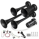 - 【Premium Quality, Unique】Our loud train truck horns kit is made of high-quality zinc alloy materials to ensure maximum strength and durability. It is can withstand harsh weather conditions or extreme temperatures with trusted quality and lifespan. Unique appearance, neat and striking arrangement, excellent sound quality and stable frequency.