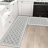 2PauwerPauwer Anti Fatigue Kitchen Rug Sets 2 Piece Non Slip Kitchen Floor Mats Waterproof Kitchen Runner Rug Gray Farmhouse Kitchen Rugs and Mats Cushioned Comfort Standing Mat PVC Foam Kitchen Mats