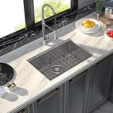 Mosson Single Bowl Kitchen Sink, 29.5" x 18" Smart Drop in Kitchen Sink Modern 304 Stainless Steel Single Bowl Kitchen Sinks, Gun Gray Workstation Sink with Faucet Combo