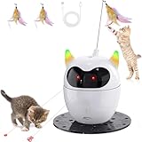 - 【360° Irregular Rotating Cat Toy】New-upgrade 2 in 1 cat toy is special for pet cats. Everytime you start the cat toy, cat toys ears will flashing for 1 minute and then off. The head will 360° irregular rotating to improve cat reaction speed and coordination. There are 2 patterns of red dots. Feathers with bell will make a sound to attract cat's attention. Each function has a corresponding control switch, which makes it convenient for you to control the cat toy.
