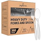 1JoyServe21% OffPlastic Forks and Spoons Set - (Bulk Pack 360 Pcs) Clear Plastic Cutlery Utensils Heavy Duty, 180 Forks and 180 Spoons, Silverware Sets for Party Supplies, Dinners, Take-Out, Catering, Food Services