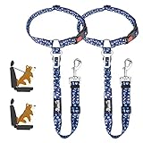 1SlowTonSlowTon Dog Seat Belt, 2 Pack Pet Car Seatbelt Headrest Restraint Adjustable Puppy Safety Seat Belt Reflective with Elastic Bungee Connect with Dog Harness in Vehicle for Travel Daily Use(Blue)