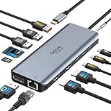 Docking Station for Laptop Dual Monitor,Selore 13 in 1 USB C Hub Multiport Adapter with 2HDMI Displayport DP Ethernet 100W PD USB Port SD/TF Mic/Audio for Windows/MacBook/Dell/Surface/HP/Lenovo
